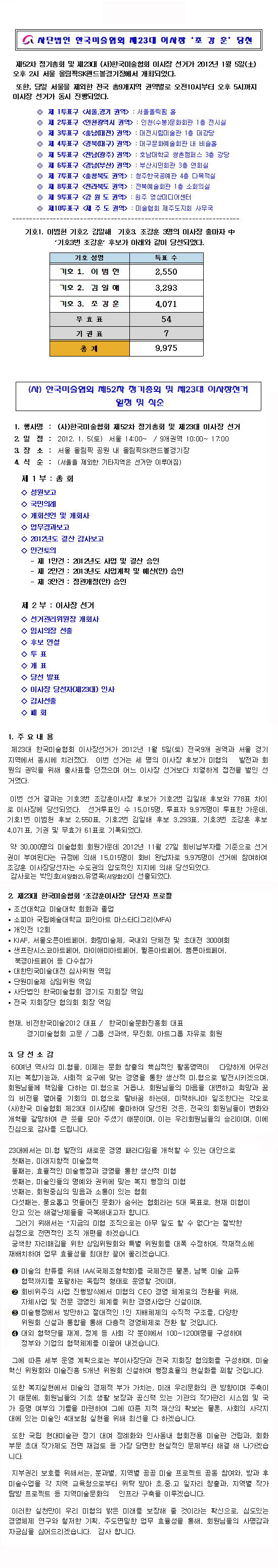 ※ 한국미술협회 제23대 임원선거 결과 <기호③조강훈 후보 당선>※