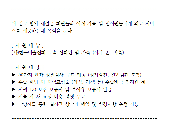 ◆ 2014년6월2일 '(사)한국미술협회' 와 '하늘안과의원' 업무협약체결