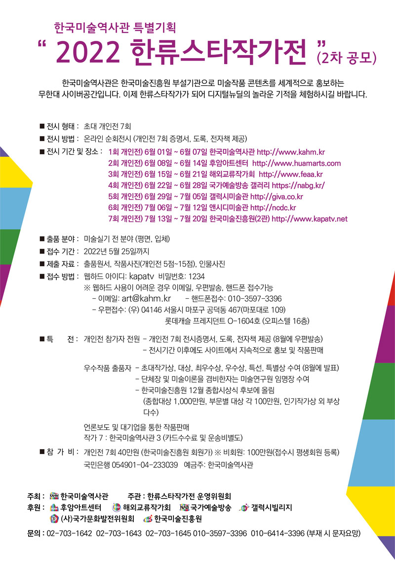 2022 한류스타작가전 2차 공모 (7기관 7회 온라인 순회개인전)