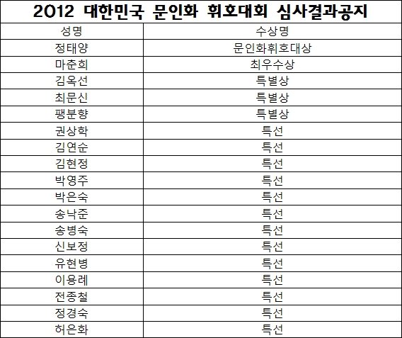 1차 심사위원 : 김문섭, 김영배, 박명수, 이옥순, 전성지, 정현자