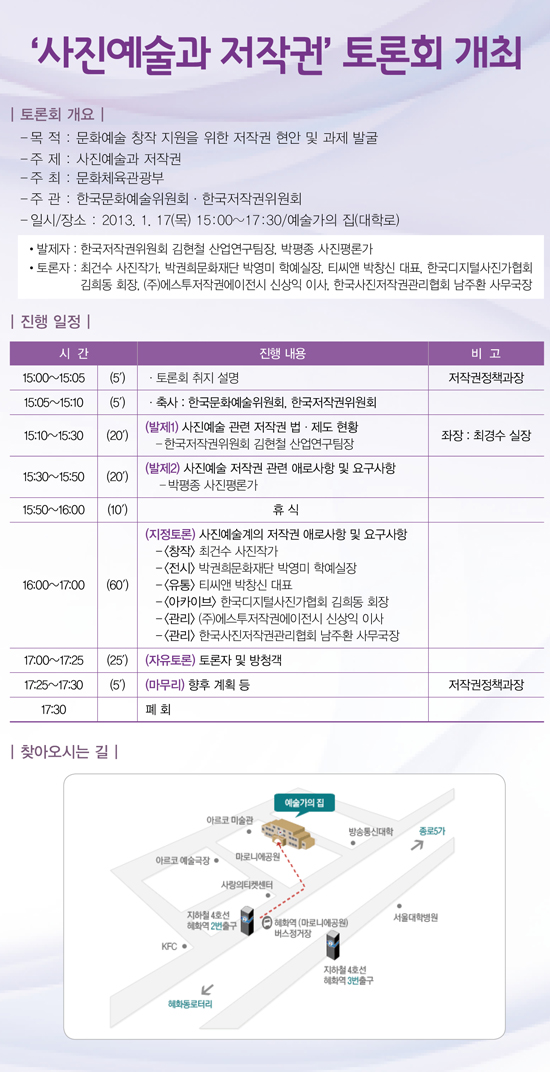 - 주소 : 우)07995 서울특별시 양천구 목동서로 225 대한민국예술인센터 904호