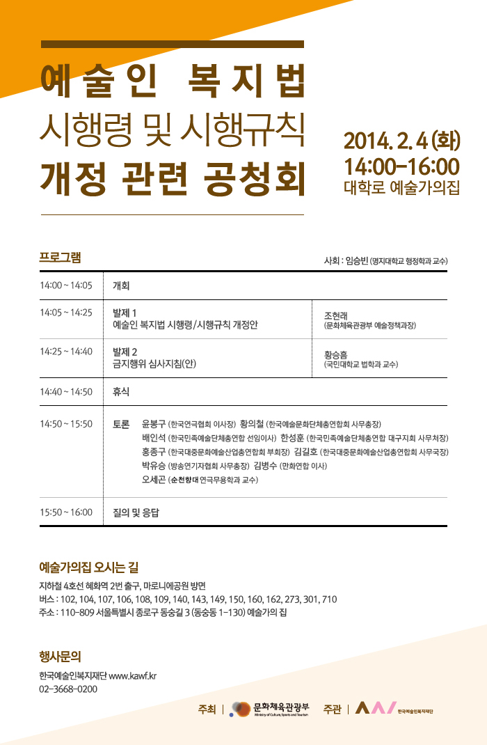 - 주소 : 우)07995 서울특별시 양천구 목동서로 225 대한민국예술인센터 904호