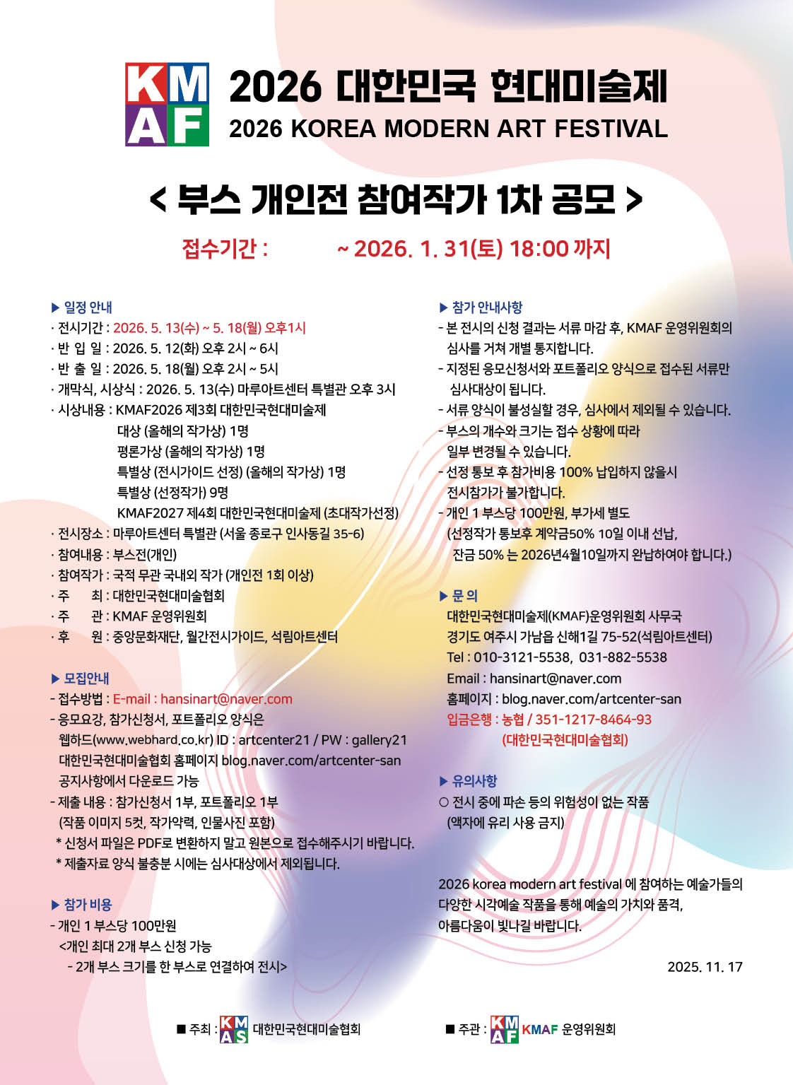 2026 대한민국현대미술제 < 부스 개인전 참여작가 1차 공모>