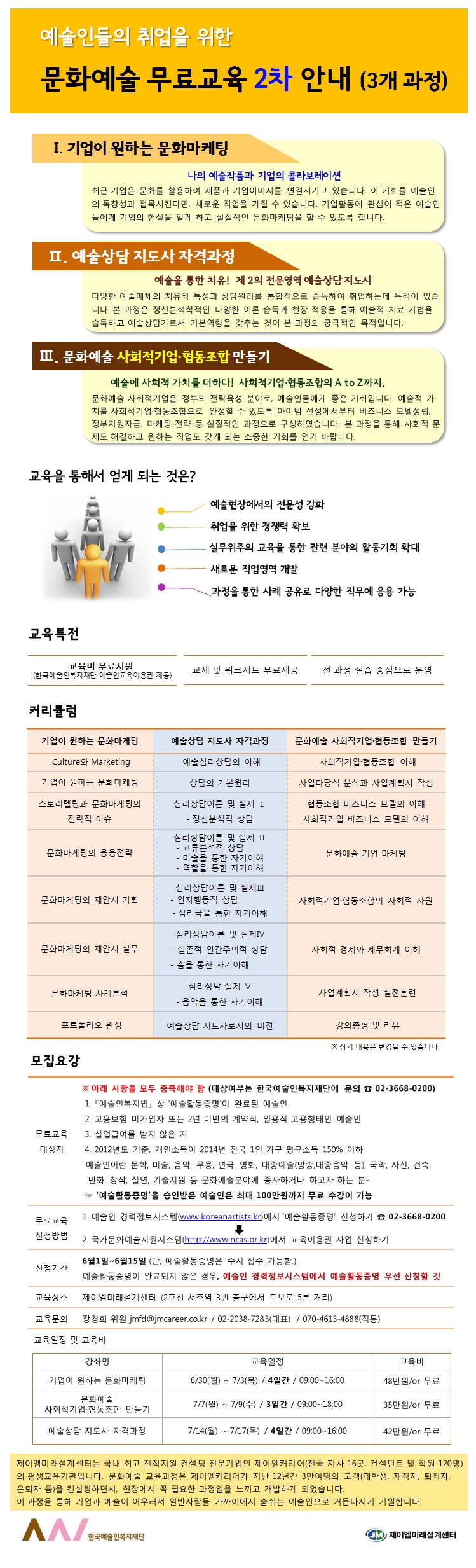 [한국예술인복지재단] 예술인들의 취업을 위한 문화예술 무료교육 2차 안내