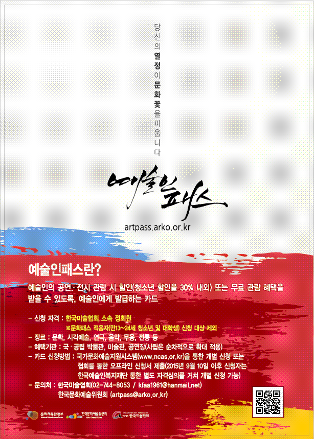 한국미술협회의 홈페이지를 통하여 연결된 타 사이트들에 대한 보증이나 그 내용의 인증 역시, 한국미술협회은 하지 않으며, 이들 사이트를 이용하여 생긴 손실이나 데이터의 손실에 대해서도 책임을 지지 않음을 알려 드립니다.