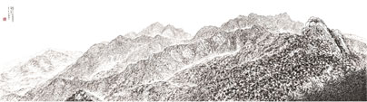 1. 관봉에서본의상능선과북한산정상1 한지에수묵 (2020년도) 2810x780mm