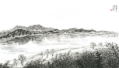 2. 궁산에서 본 한강 한지에 수묵 2021년 75x129cm