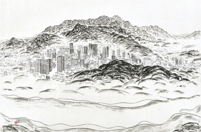 작가의 말 : 서울의 입지에 관한 산들과 강, 그리고 하천을 그린 그림으로