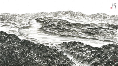 5. 오두산에서 본 한강 한지에 수묵 2021년 74x256cm
