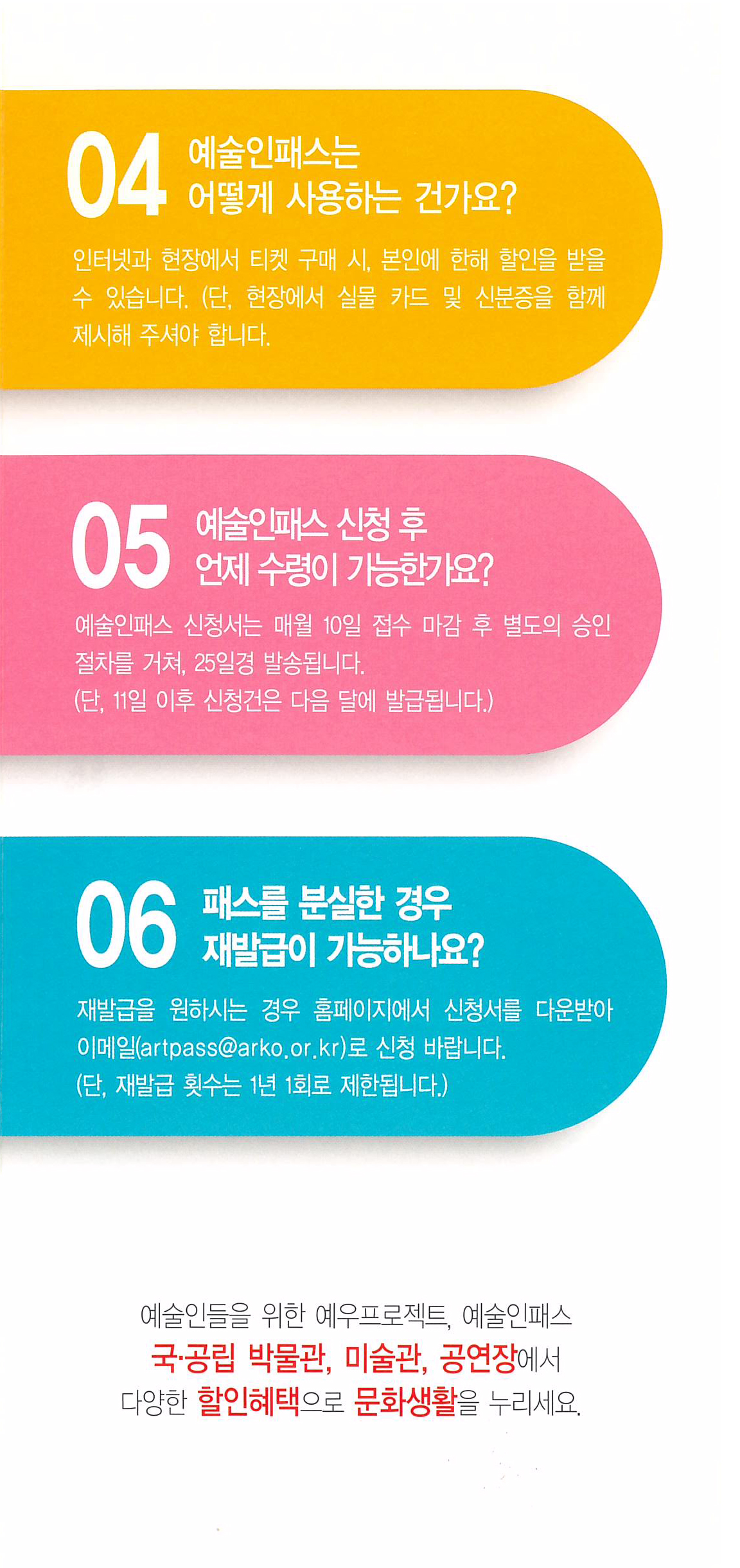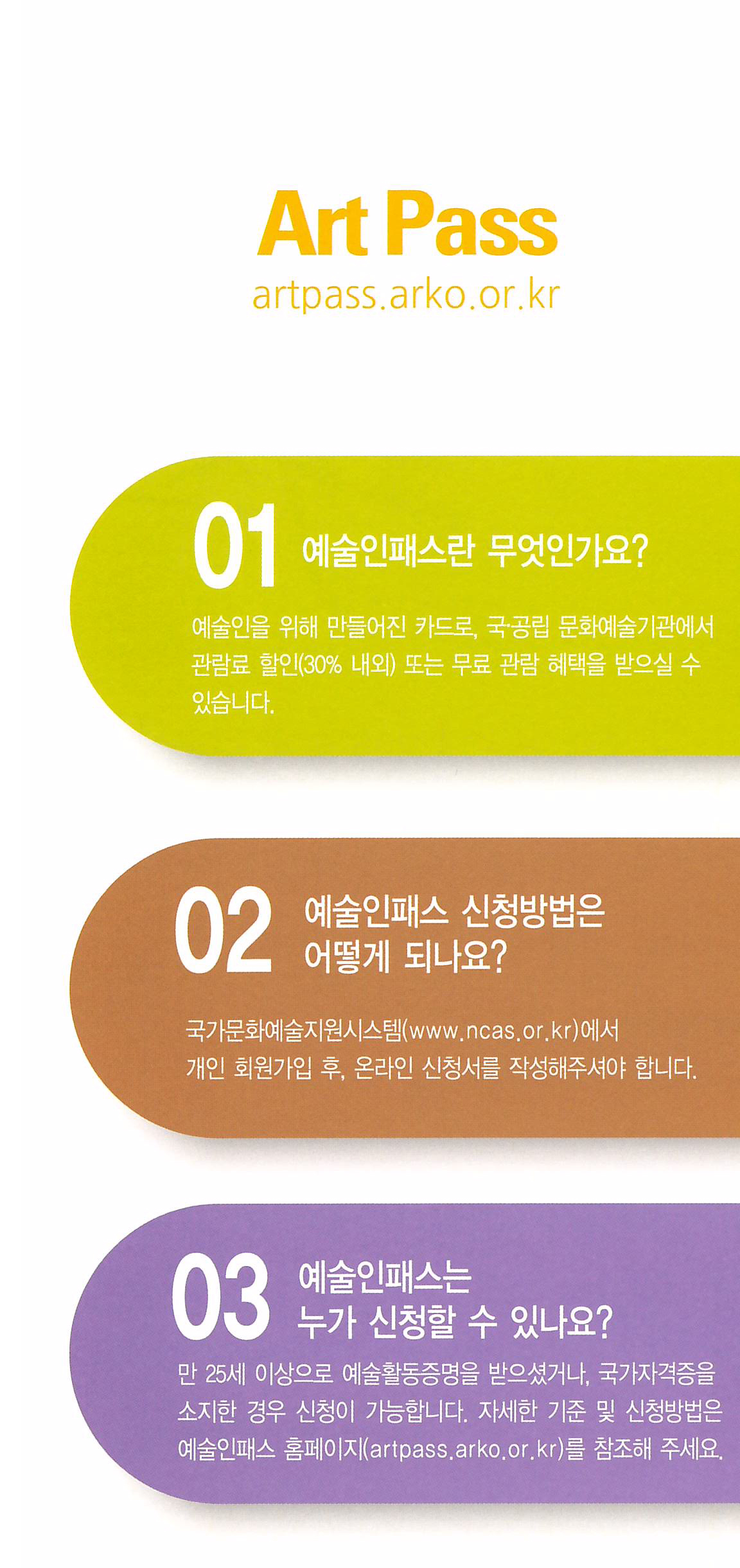 - 예술위원회는 개인정보의 이용 및 제공에 있어 관계법령을 엄수하여 부당하게 이용되지 않도록 노력하겠습니다.