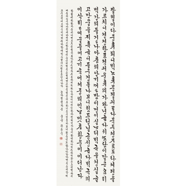 ◎ 이번 제44회 대한민국미술대전 서예부문에는 1,156점이 응모되었다. 응모작품 중 입선 286점, 특선 77점, 우수상 8점, 대상 1점 총372점이 선정되었다.