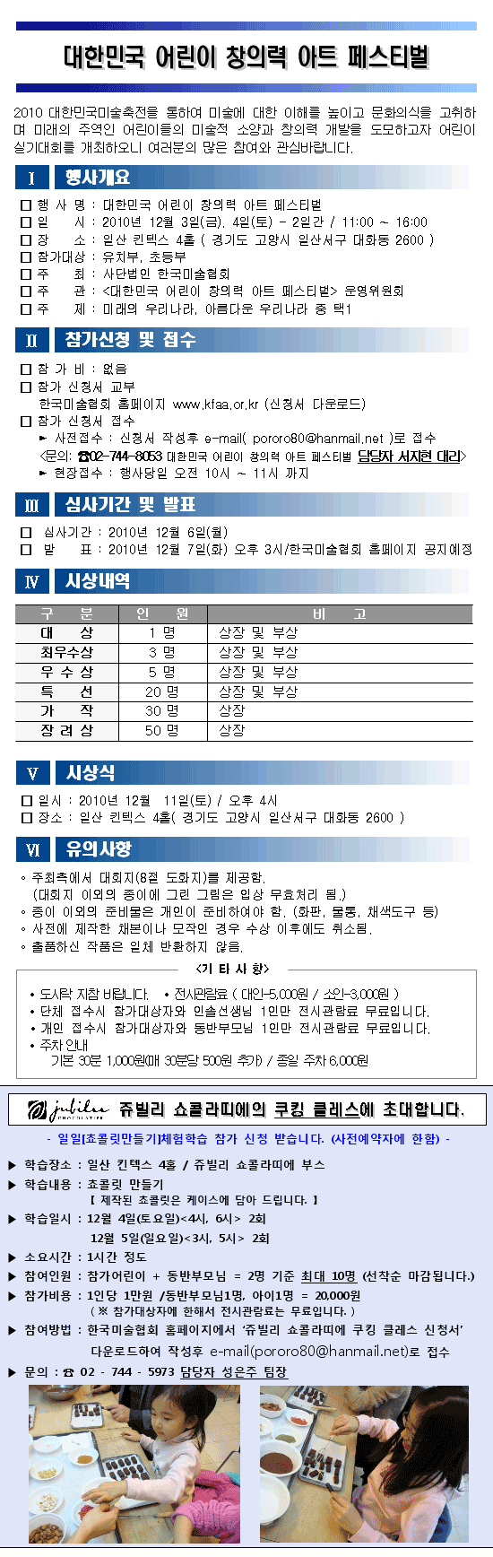 ◎ 대한민국 어린이 창의력 아트 페스티벌 <어린이 실기대회> 참가 신청 받습니다. ◎