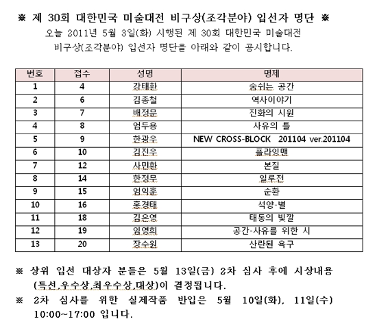 미술협회가 운영하는 웹사이트에서 이메일 주소 등 식별할 수 있는 개인정보를 취득하면 안됩니다.. 만약 기타 부정한 방법으로 이러한 개인정보를 열람 또는 제공받은 자는 [공공기관의개인정보보호에관한법률] 제23조의 규정에 의하여 처벌을 받을 수 있습니다.