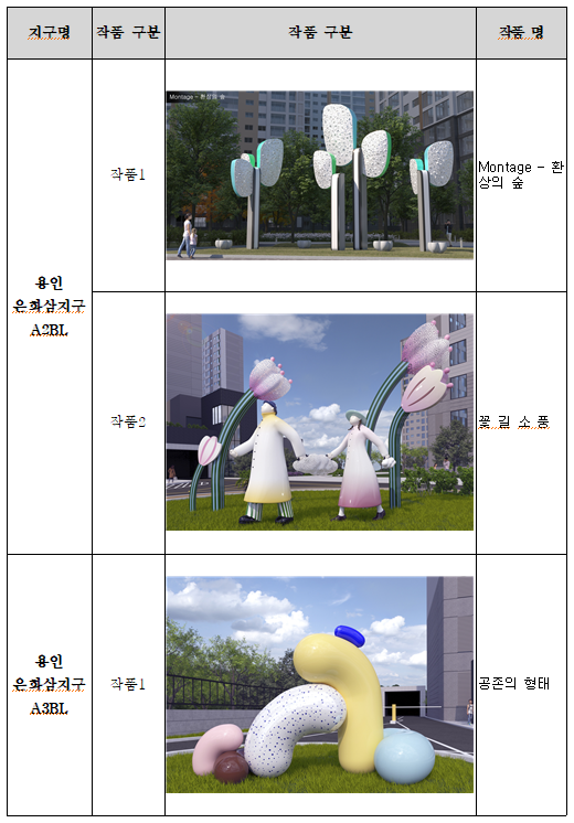 용인 은화삼지구A2BL-A3BL 공동주택’ 신축공사 미술작품 선정결과