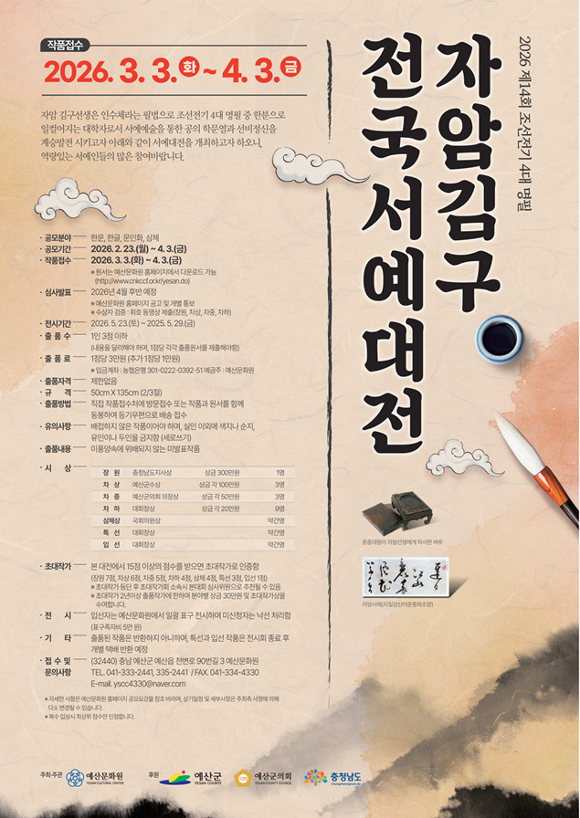 [예산문화원] 2026년 제 14회 자암김구서예대전