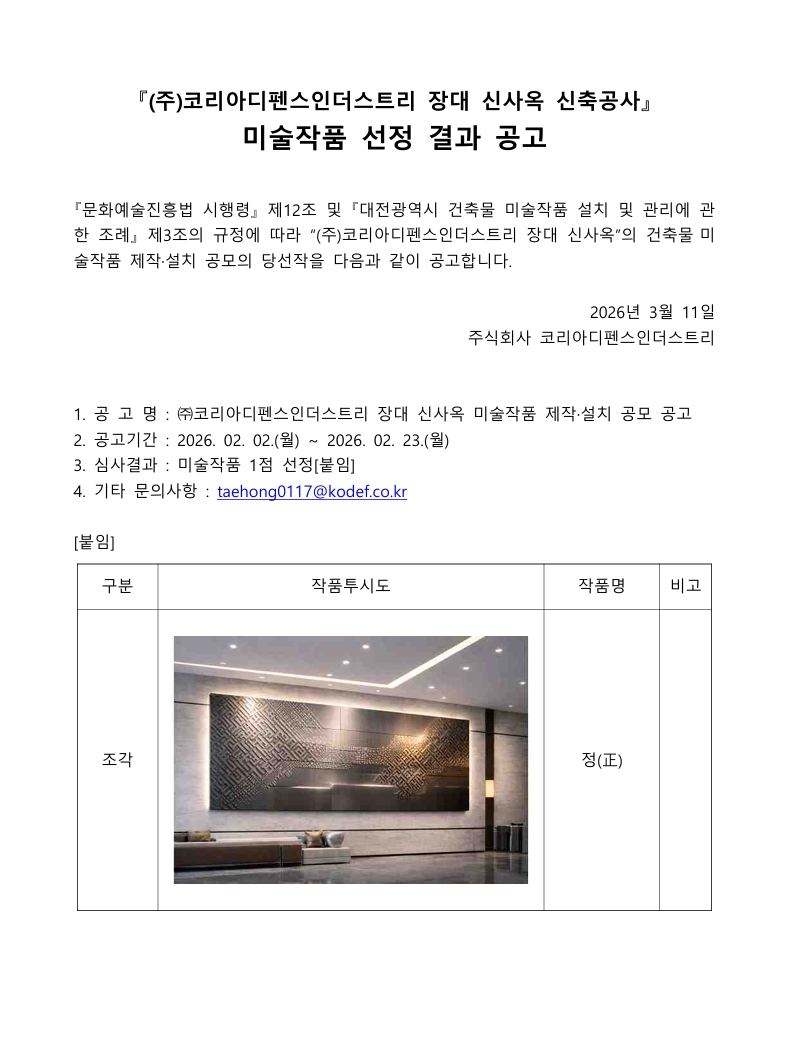 장대 신사옥 신축공사 미술작품 선정결과