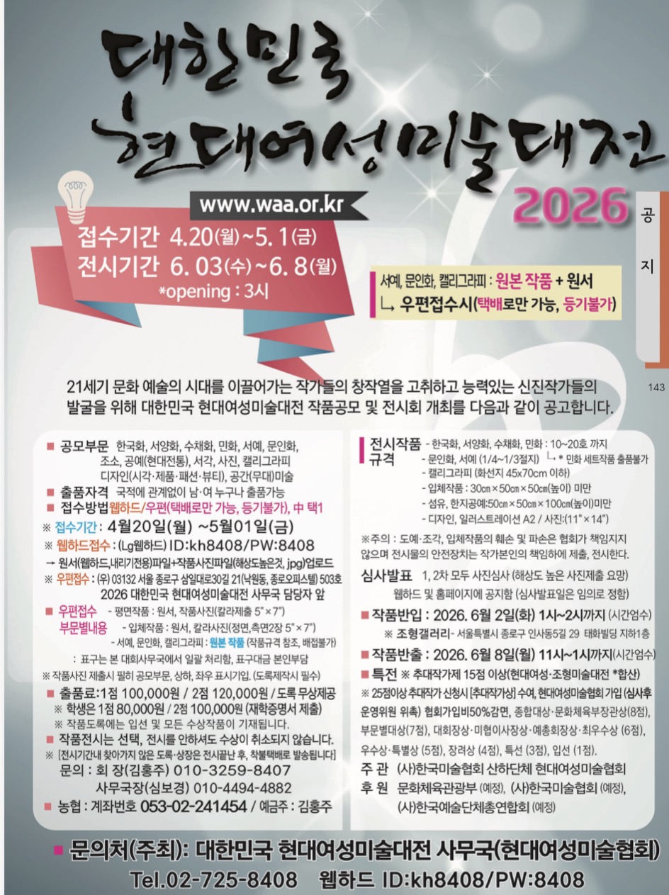 미술문화계의 공모전 및 전시 소식을 알려드립니다.