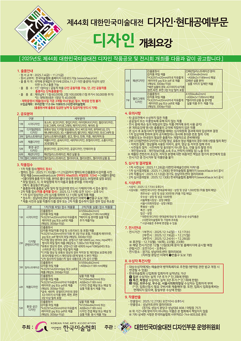 2025년 제44회 대한민국미술대전 <디자인> 개최요강 및 원서 공고입니다.