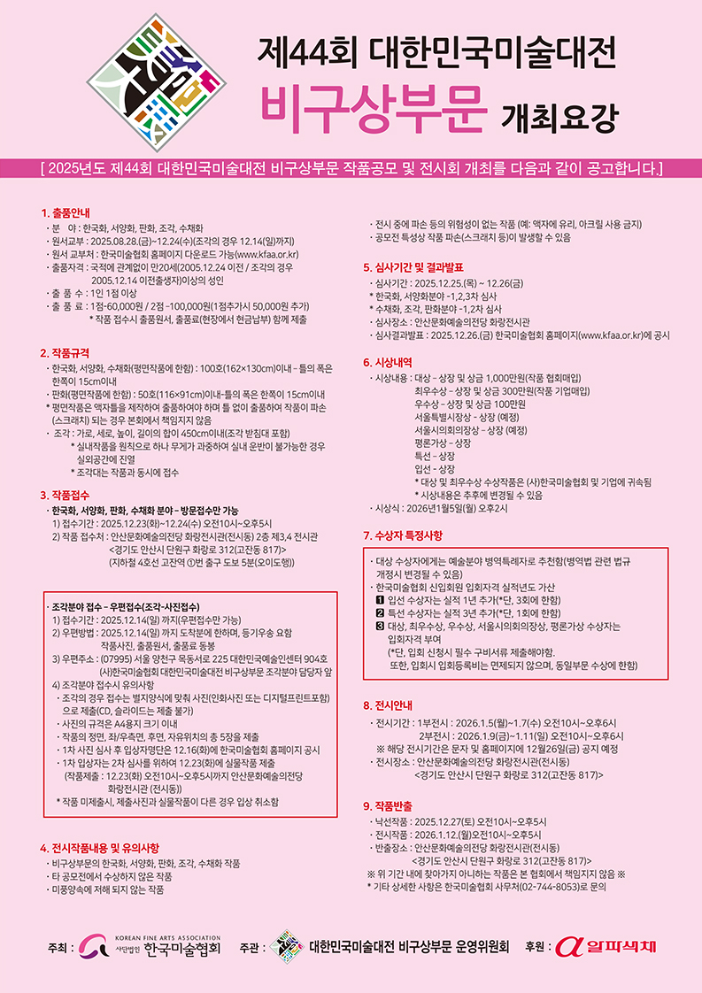 2025년 제44회 대한민국미술대전 <비구상부문> 개최요강 및 원서 공고입니다.