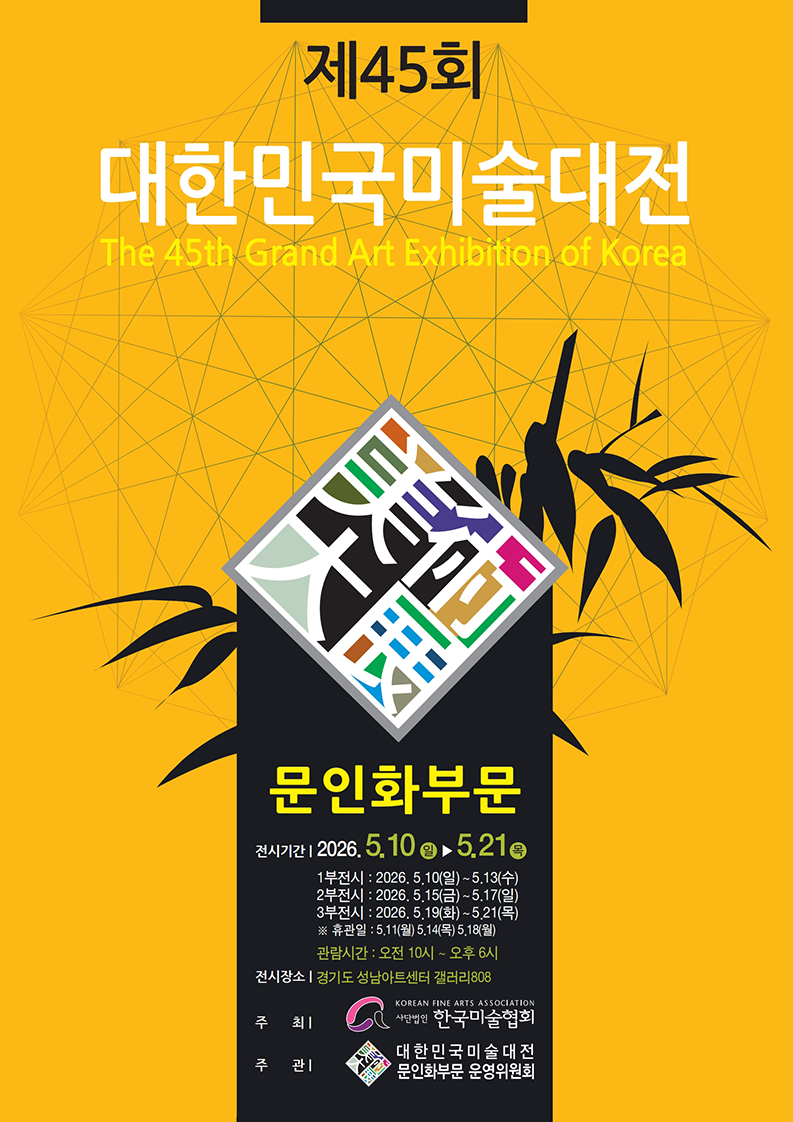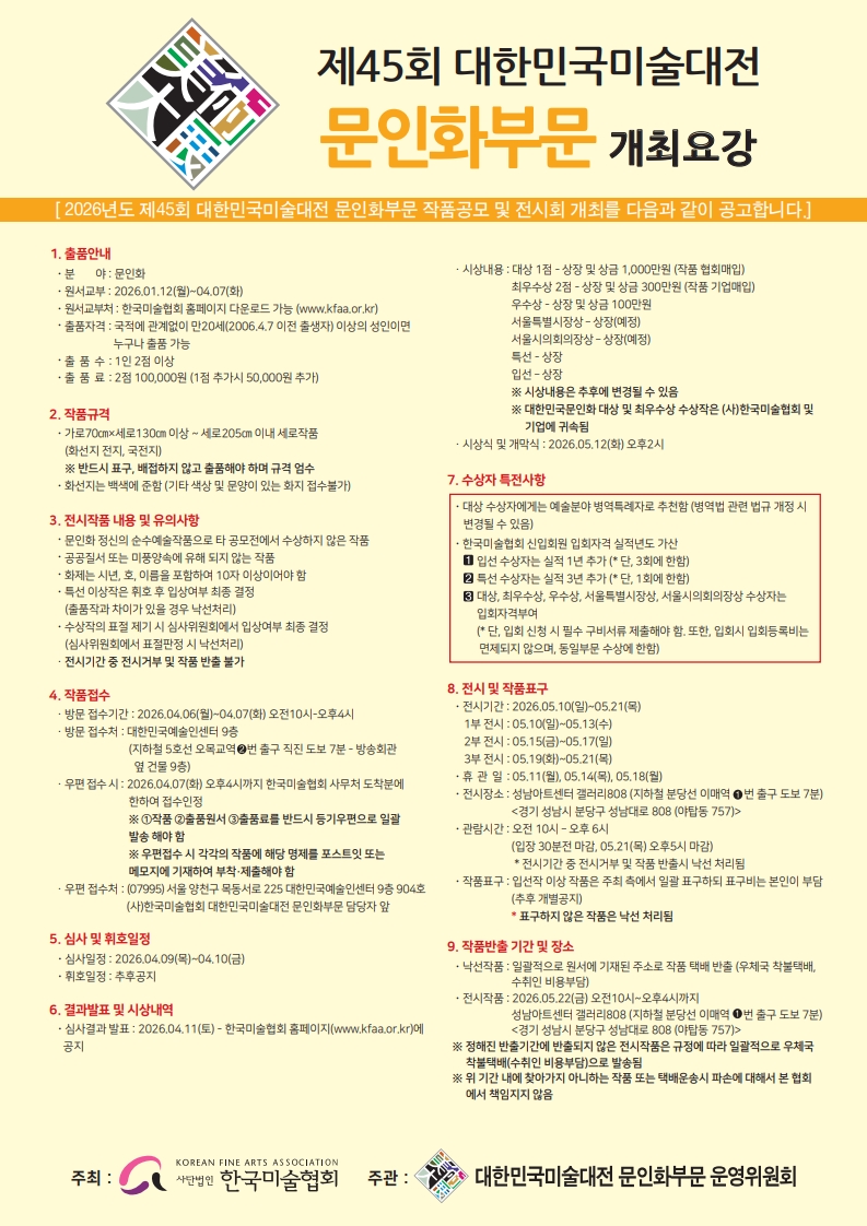2026년 제45회 대한민국미술대전 문인화부문 개최요강 및 원서 공고입니다.