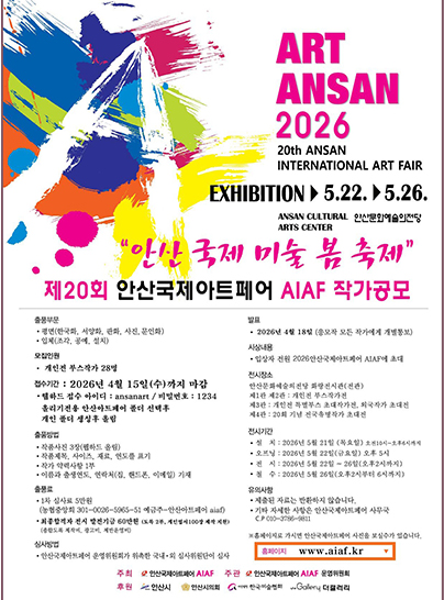 한국미술협회의 홈페이지를 통하여 연결된 타 사이트들에 대한 보증이나 그 내용의 인증 역시, 한국미술협회은 하지 않으며, 이들 사이트를 이용하여 생긴 손실이나 데이터의 손실에 대해서도 책임을 지지 않음을 알려 드립니다.