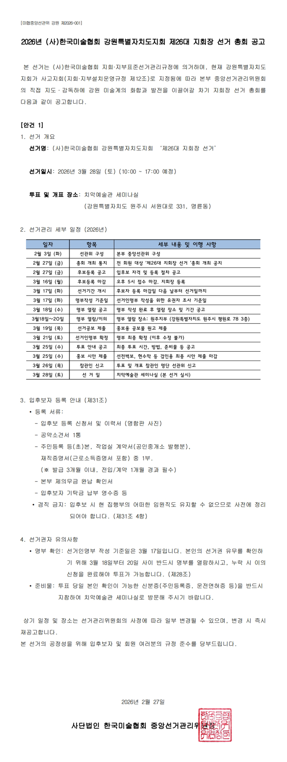 단 정회원의 경우에는 미술협회 데이터베이스와 연동되어 별도로 회원가입을 하지 않고 회원번호를 이용하여 접속 할 수 있습니다.